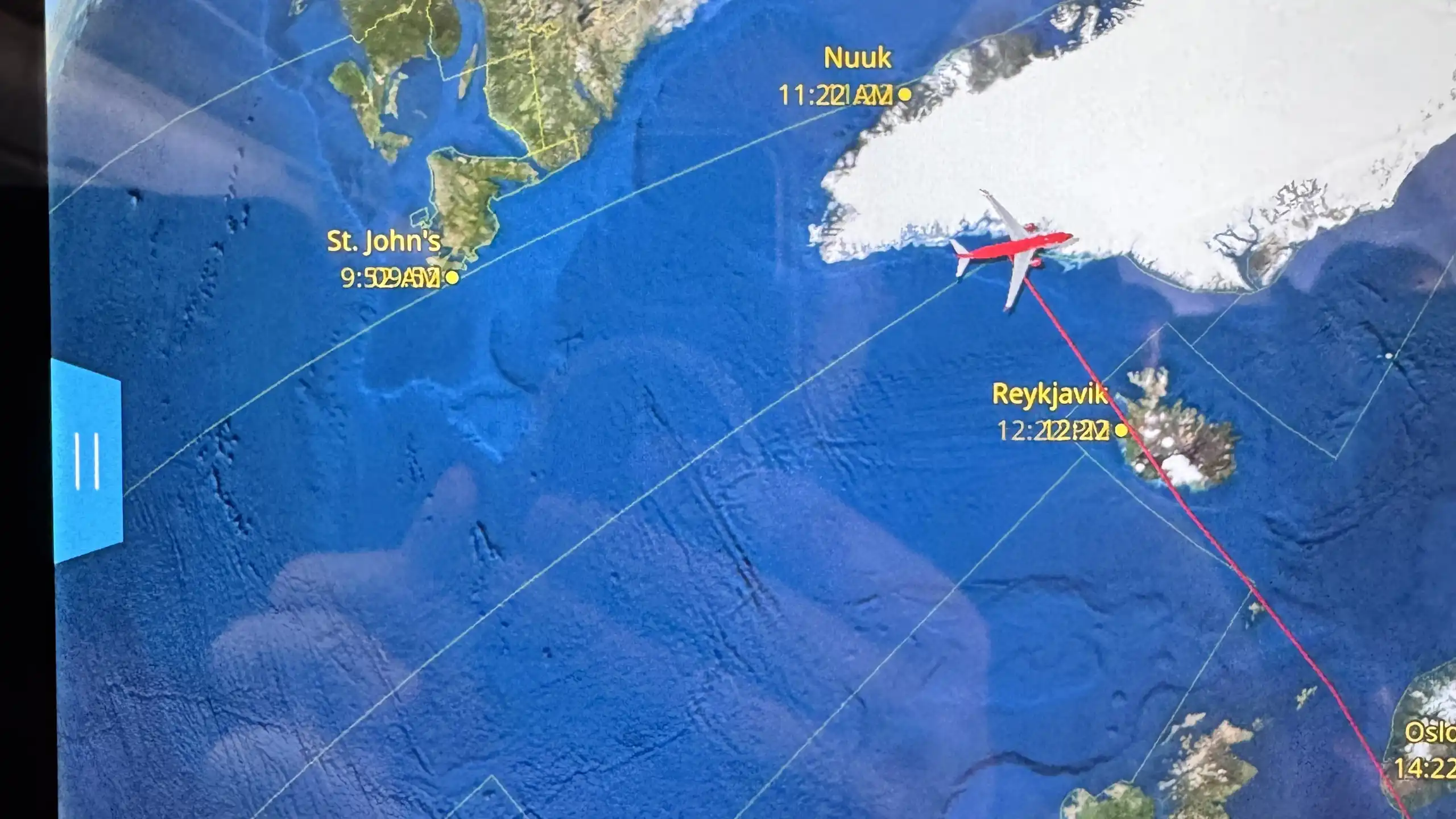 Dagens cockpitbesætning var igen kaptajn Thomas, mens styrmanden på flyvningen var Sten som også briefede passagererne løbende om vejret. Der var tanket nok flybrændstof, skulle det blive nødvendigt at "hænge over skyerne" i op mod to timer, til det blev muligt at lande – eller om det blev en "u-vending" med kurs tilbage til København via Keflavik for at tanke op.