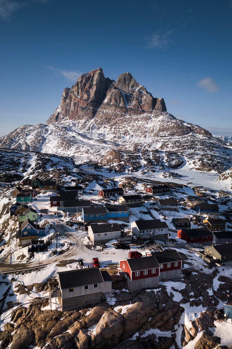 Din rejse begynder med en flyvning fra Nuuk til Uummannaq – en af Grønlands mest ikoniske og billedskønne byer, dramatisk beliggende ved foden af det hjerteformede fjeld, der har givet byen sit navn. Allerede under indflyvningen får du en forsmag på det, der venter: Isbjerge, gletskere, fjorde og fjeldlandskaber i verdensklasse.